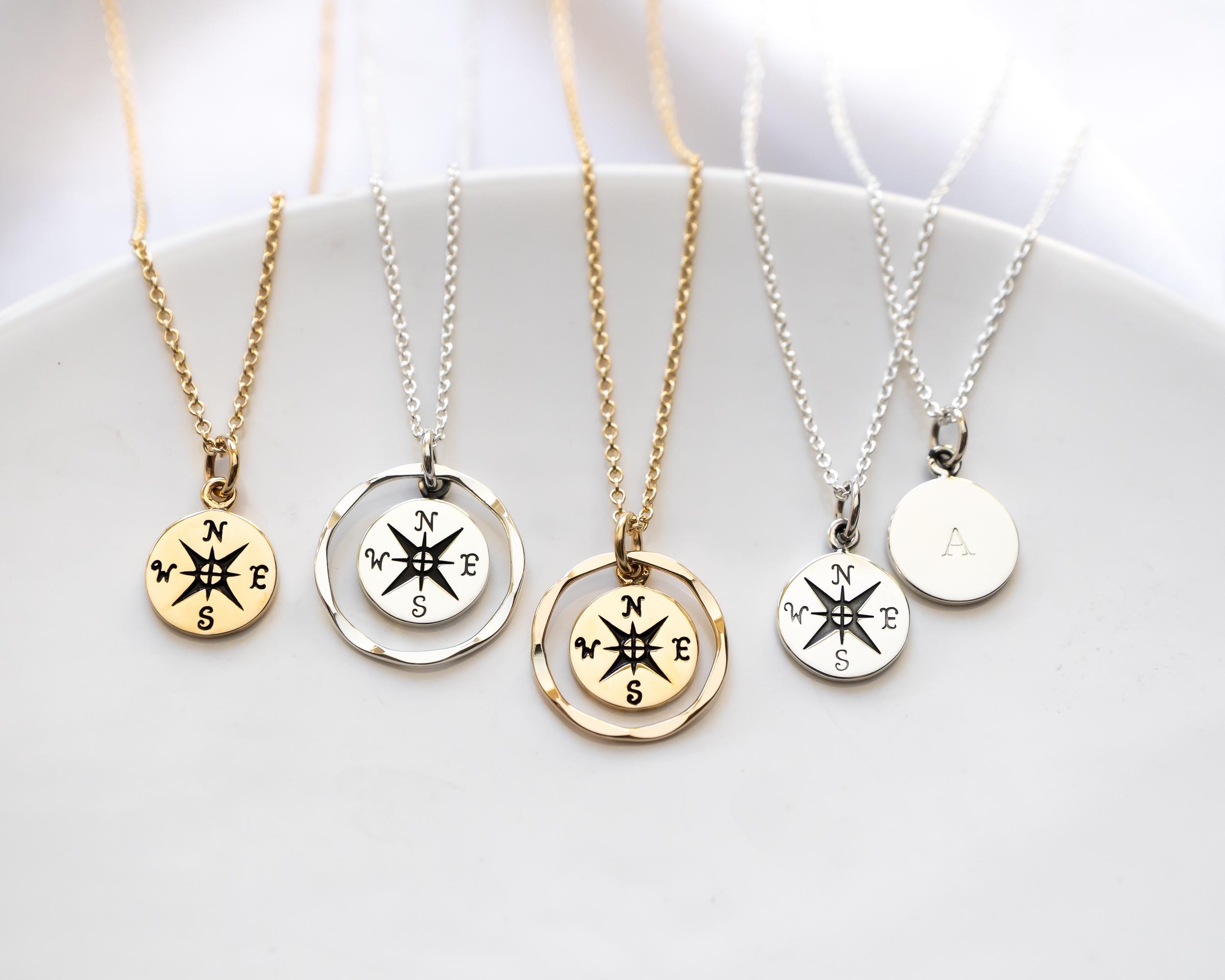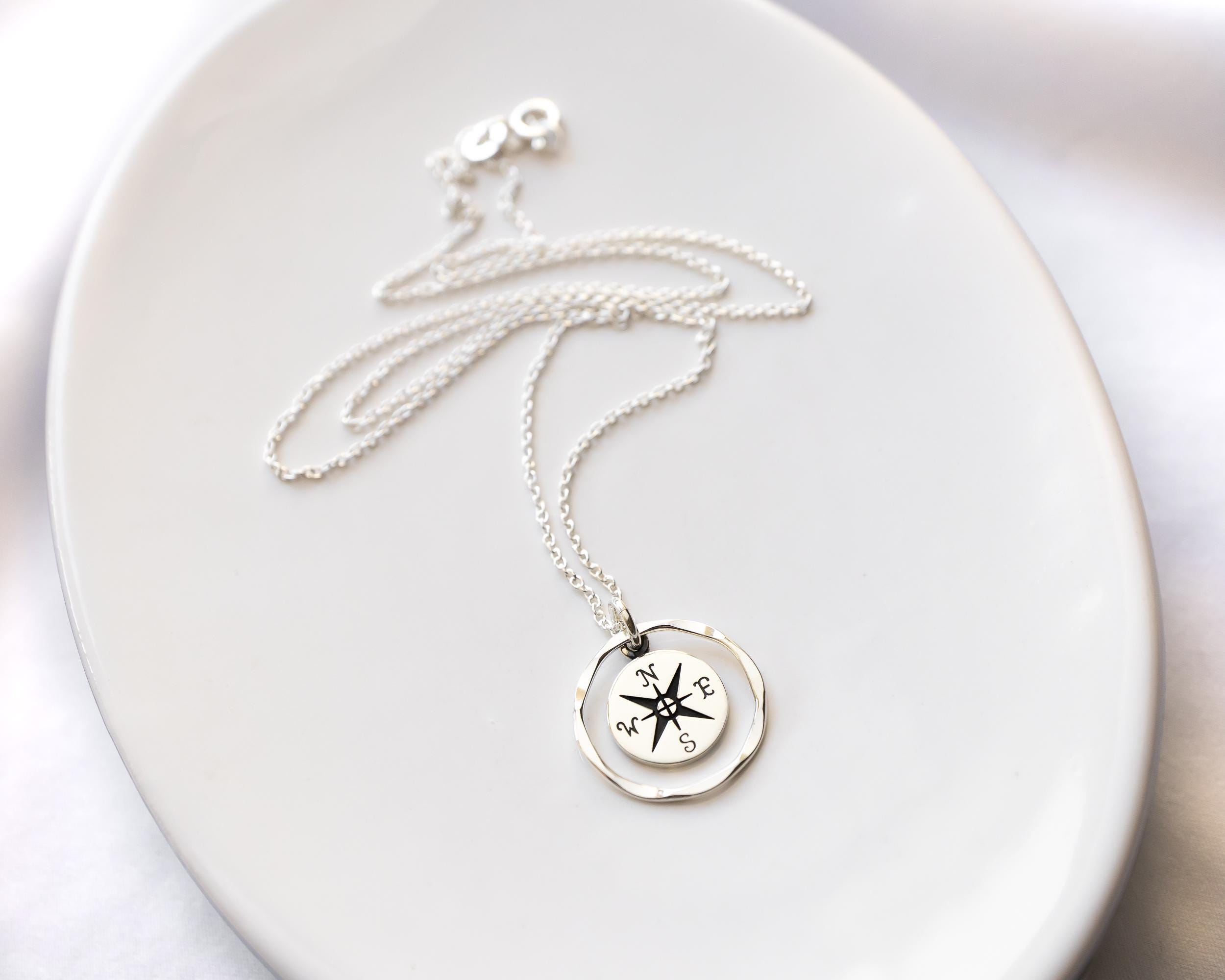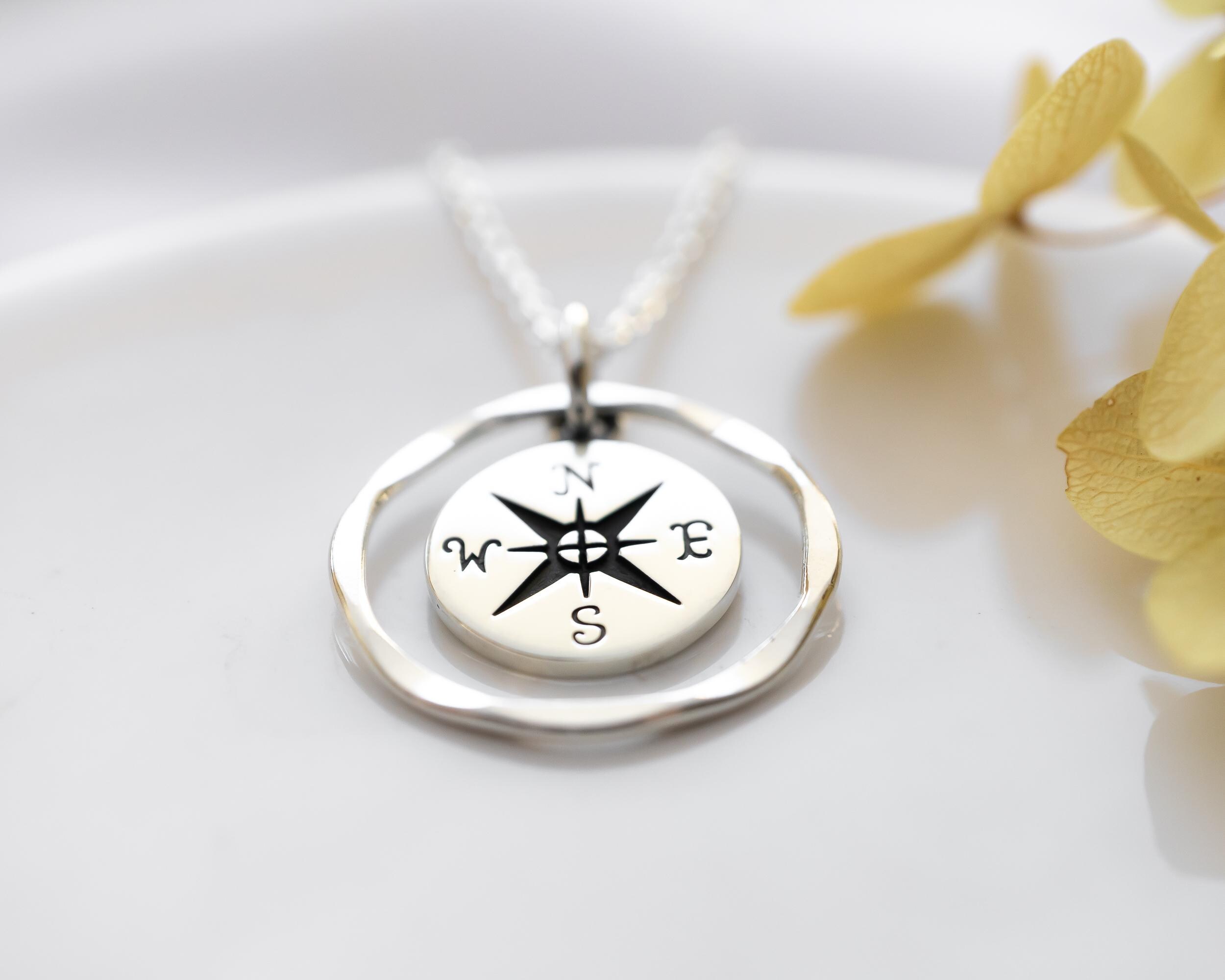 Sterling Silver Compass Necklace, Personal Growth and Intention Jewelry